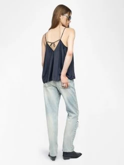 Zadig & Voltaire Cym Satin Pleated Camisole Encre