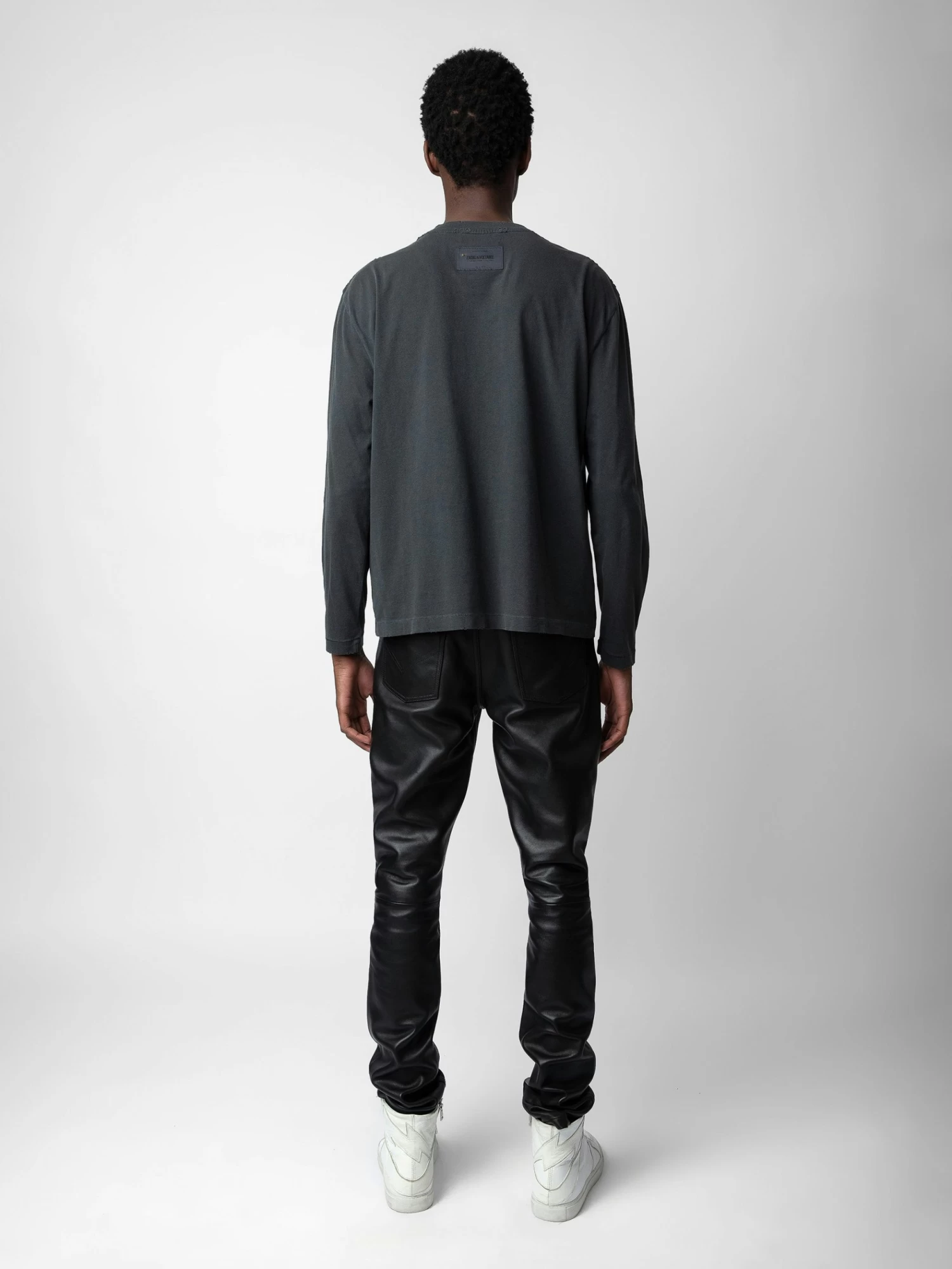 – Round neck, Long sleeves and distressed trims