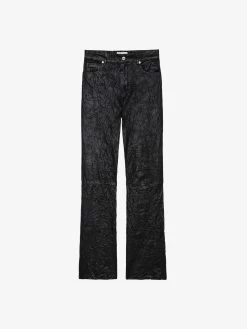 – Zadig&Voltaire women’s flared black leather pants, crafted from premium crinkled leather for a distinctive, textured finish.