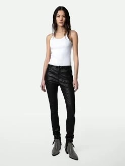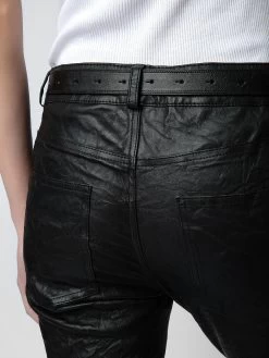 – Zadig&Voltaire’s signature material, crinkled leather, is obtained by means of a multi-step process developed by the Maison, guaranteeing unique women’s black leather pants that incorporates exceptional know-how
