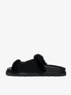 – Open mules in suede and shearling