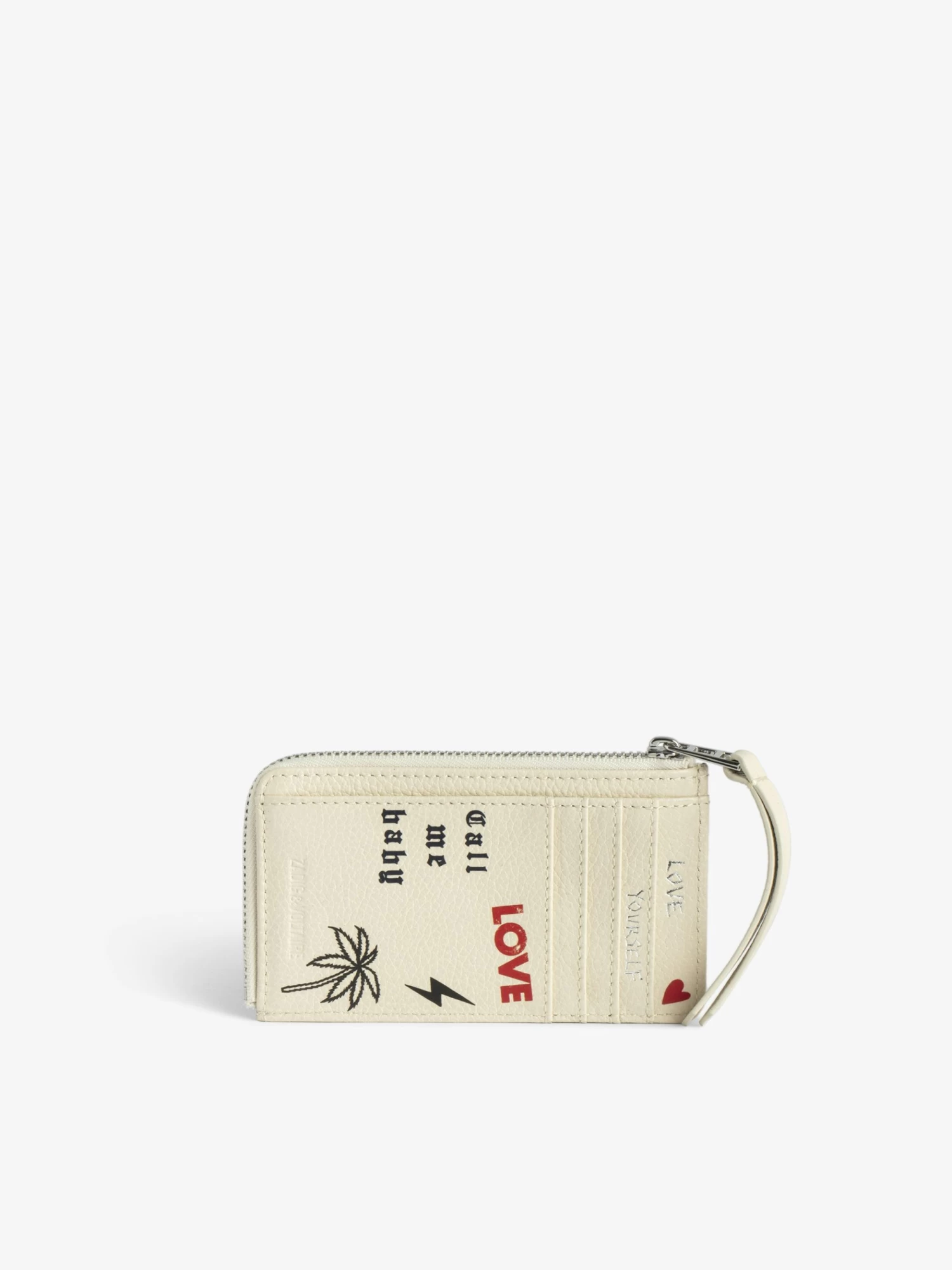– Ecru grained leather Flash card holder for women