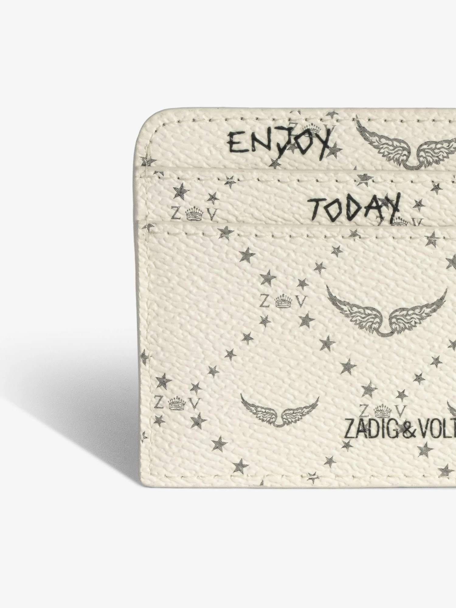 – Monogram print, “Enjoy Today” inscription and metal wings