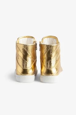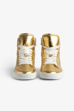– Women’s Zadig&Voltaire ZV1747 high-top sneakers in gold-tone metallic leather